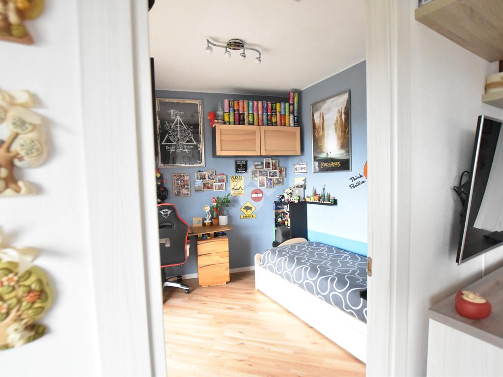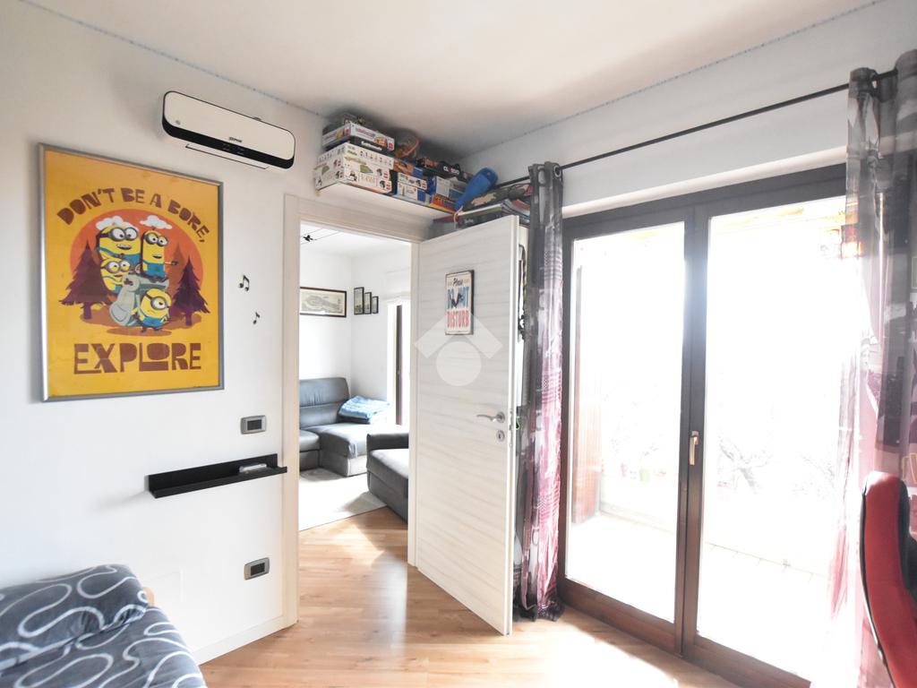 La zona della camera matrimoniale è rivolta sull'interno, comunque sul verde ed è attrezzata con un armadio profondo incassato. Infine nei pressi dell'ingresso è situato il bagno completamente piastrellato e con tutti gli elementi e con la finestra.