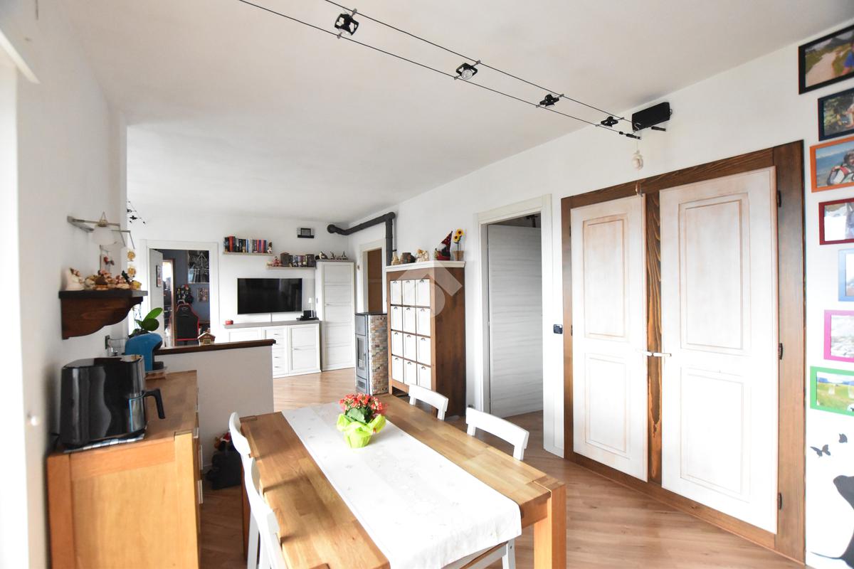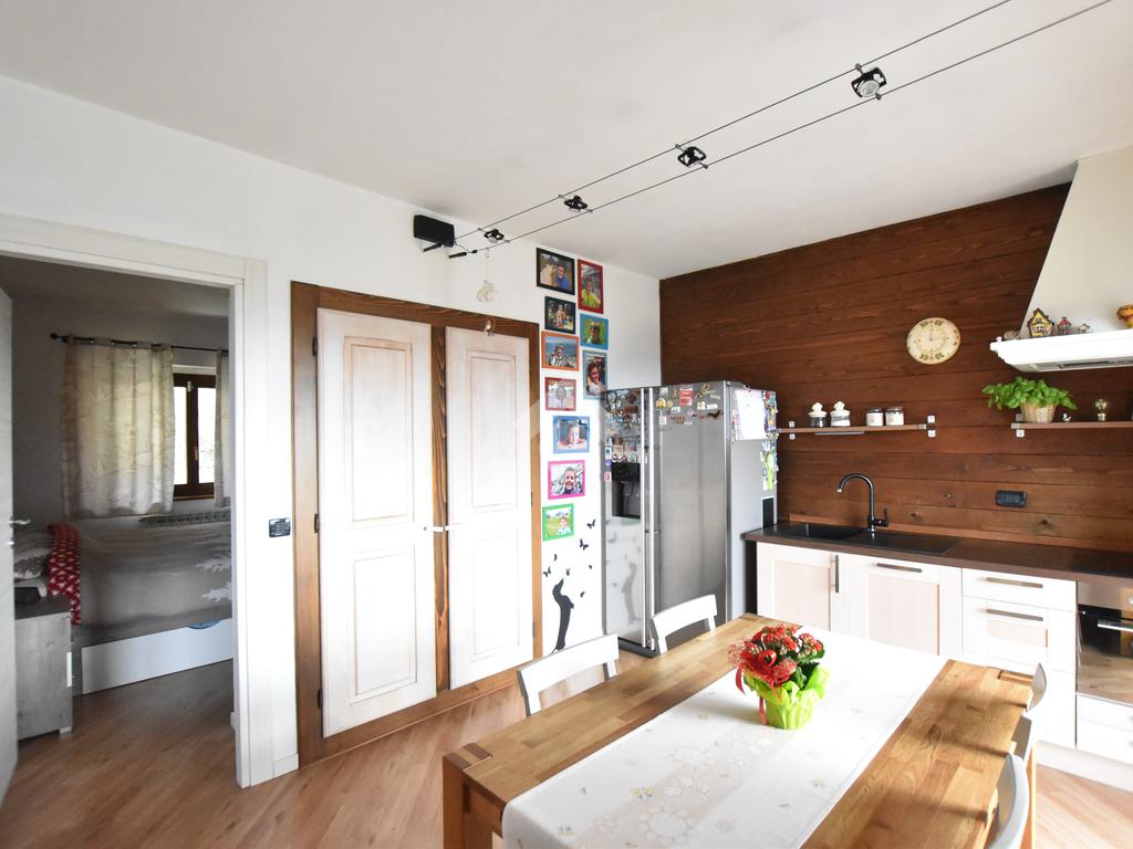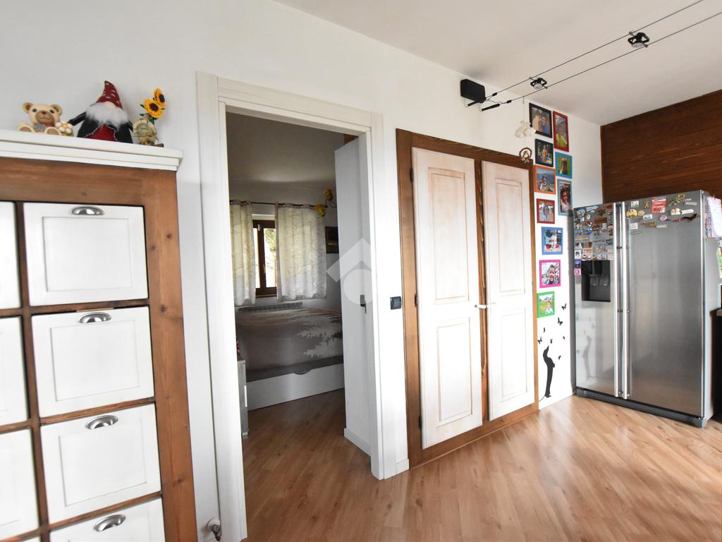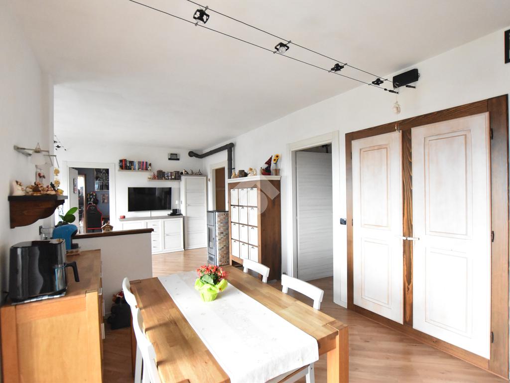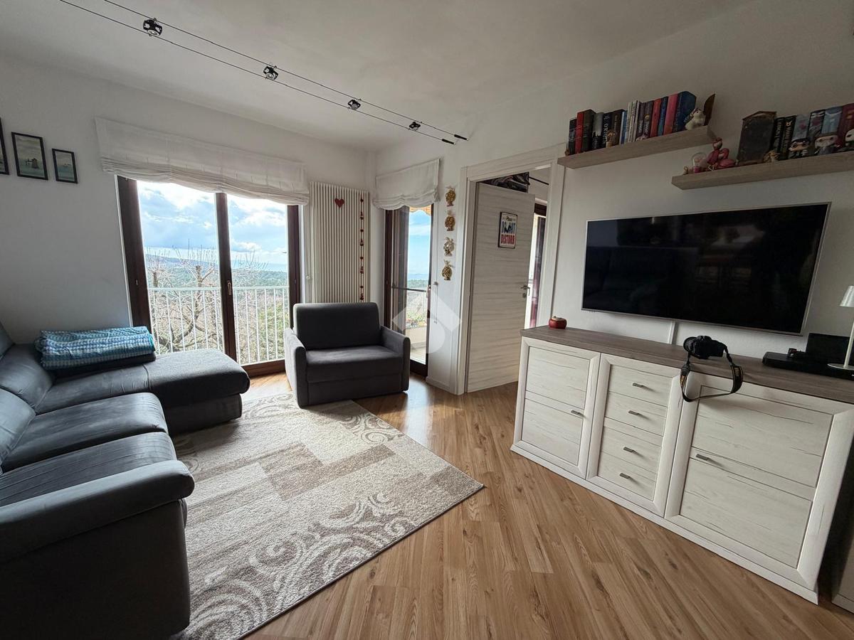 Adiacente alla cucina e nello stesso ambiente è disposto il soggiorno con una grande porta finestra sempre esposta sul panorama davanti. Con accesso diretto troviamo una camera singola o studiolo, impreziosito da un terrazzino anch'esso con vista.