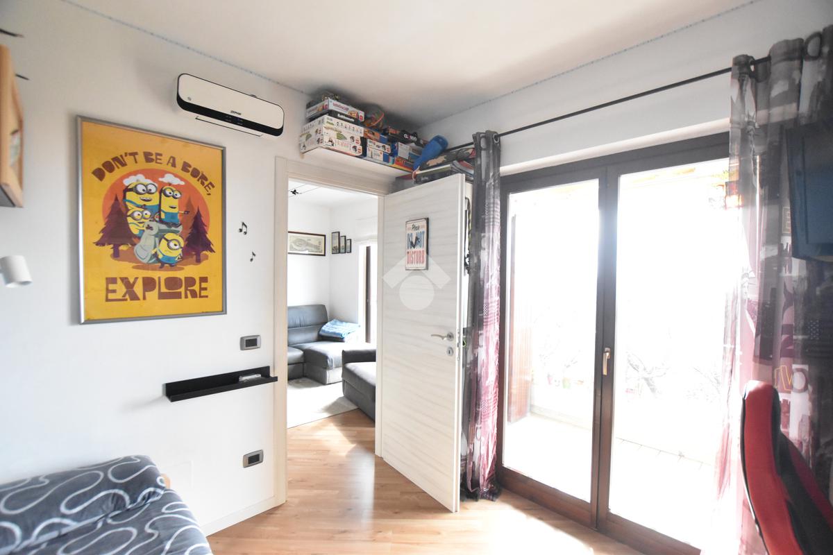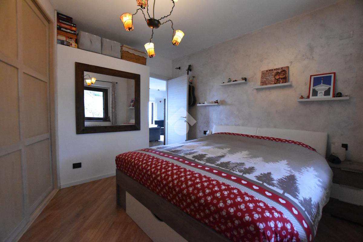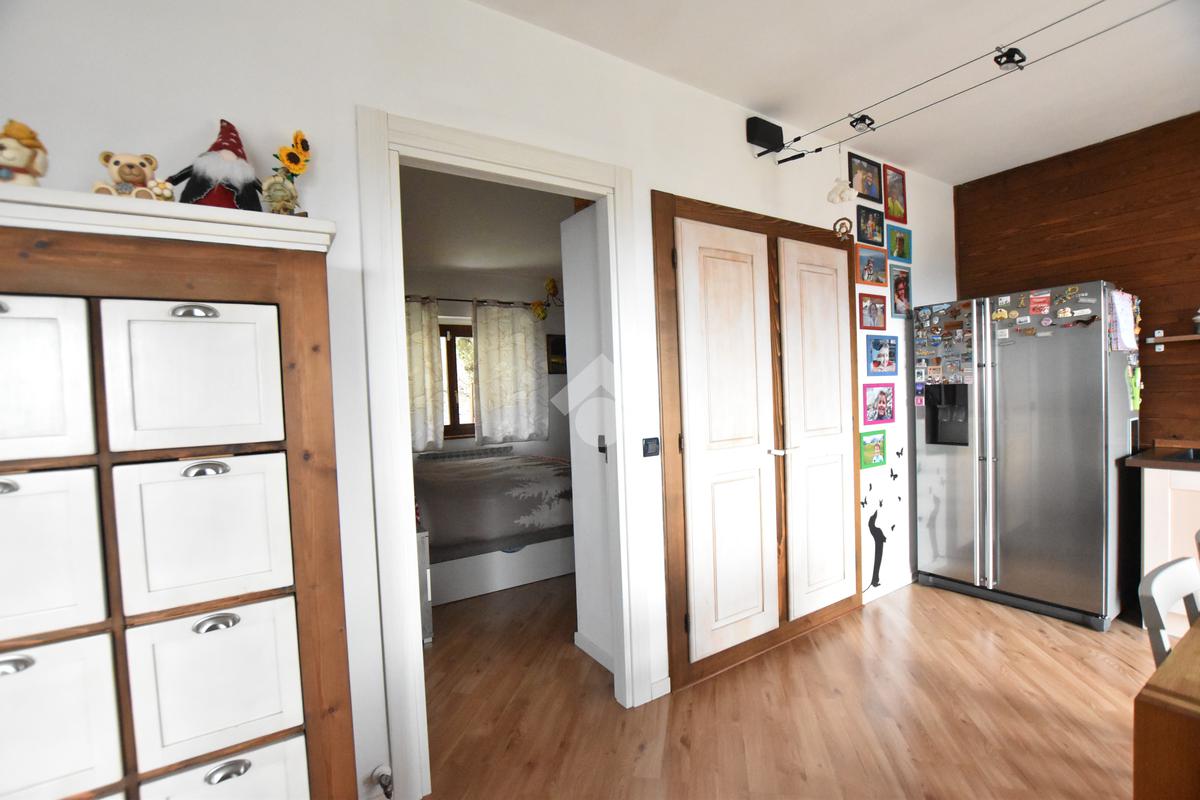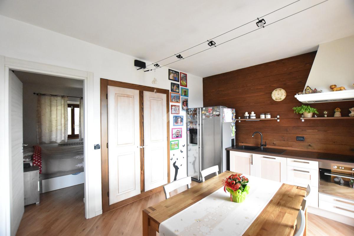 Adiacente alla cucina e nello stesso ambiente è disposto il soggiorno con una grande porta finestra sempre esposta sul panorama davanti. Con accesso diretto troviamo una camera singola o studiolo, impreziosito da un terrazzino anch'esso con vista.