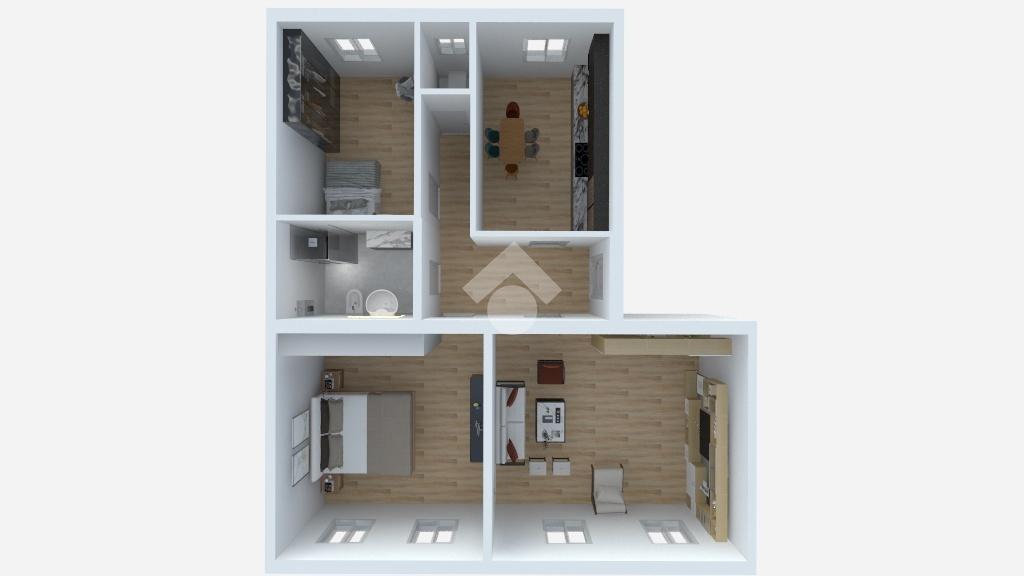 La stanza più ampia è il salone con doppie finestre e con l'eventuale secondo ingresso, che ad oggi è chiuso. Esattamente difronte è situata la cucina di ottima metratura ed esposta su corte. Questo ambiente può eventualmente diventare una camera da letto, spostando gli scarichi verso il soggiorno.