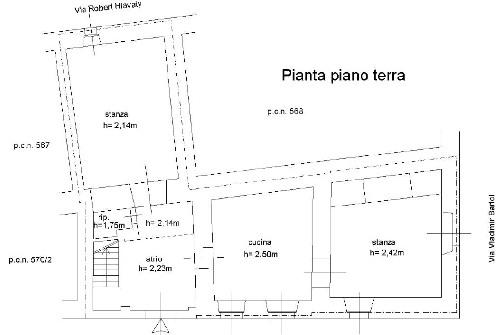 VIA BARTOL - OPICINA: nel centro storico di una delle località più famose dell'altopiano carsico a Opicina, proponiamo una casa di corte, distribuita su due livelli situata in una silenziosa via defilata.
