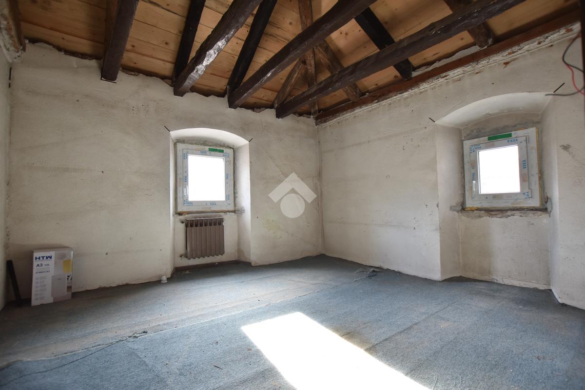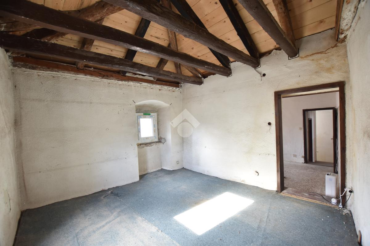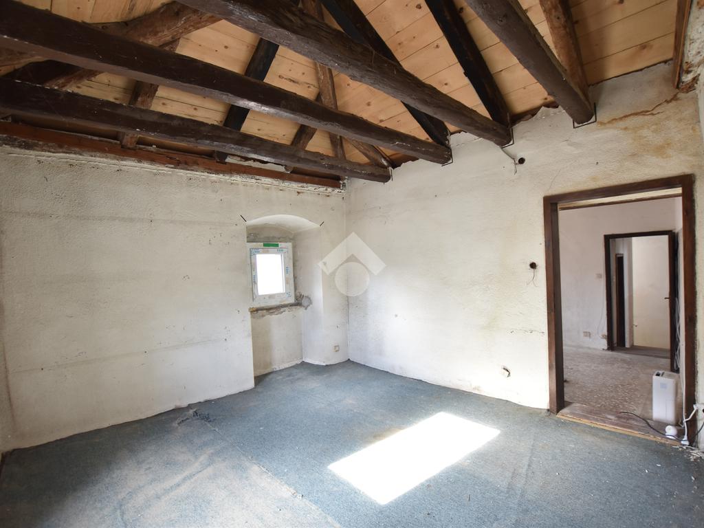 Questa antica casa storica caratterizzata dalla presenza di travi e muri a vista oltre che un caminetto, offre la possibilità di diventare successivamente alla ristrutturazione, un'abitazione rustica e confortevole.
