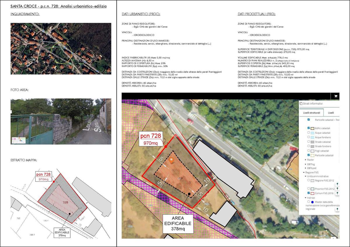TERRENO EDIFICABILE A SANTA CROCE: nel cuore della località di Santa Croce, nel comune di Trieste, si propone un terreno residenziale di 970 mq in vendita.